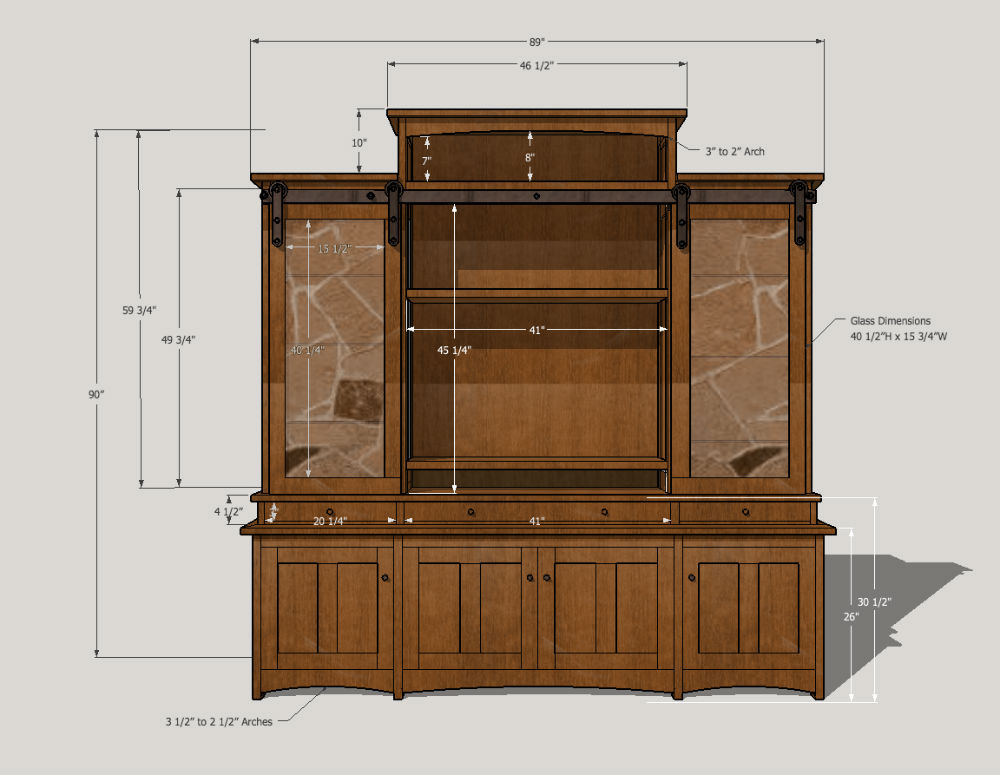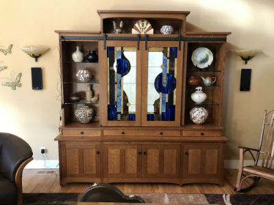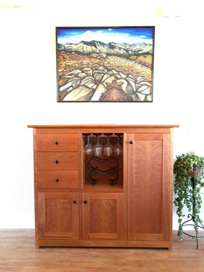 sideboard section frame and panel doors with a small bank of drawers for guitar picks and remotes. It also has a