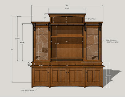 a television. The television area has the option to be covered with sliding barn wood doors, complete