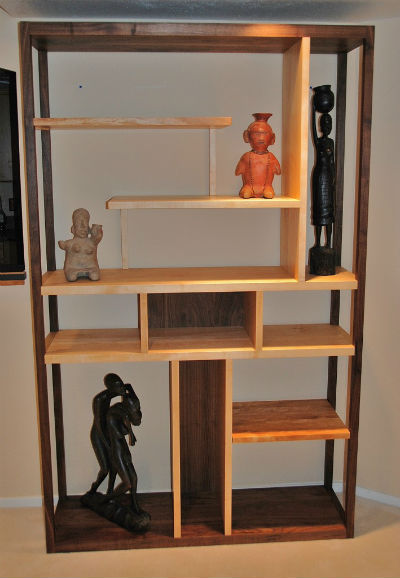 self-proclaimed "geek" on the subject of wood. Her first piece was a shelving unit made to display a clients'