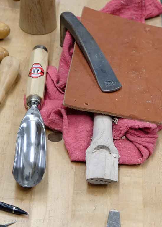 This is the more tedious part of this project. I wanted to remove just enough material to allow the head to fit snuggly. I used several chisels and rasps to pare away wood to allow a good fit around the axe head.