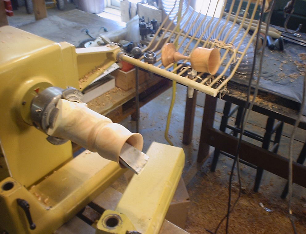 The following summary presents one workable process of turning a long, thin-stemmed goblet on the lathe: