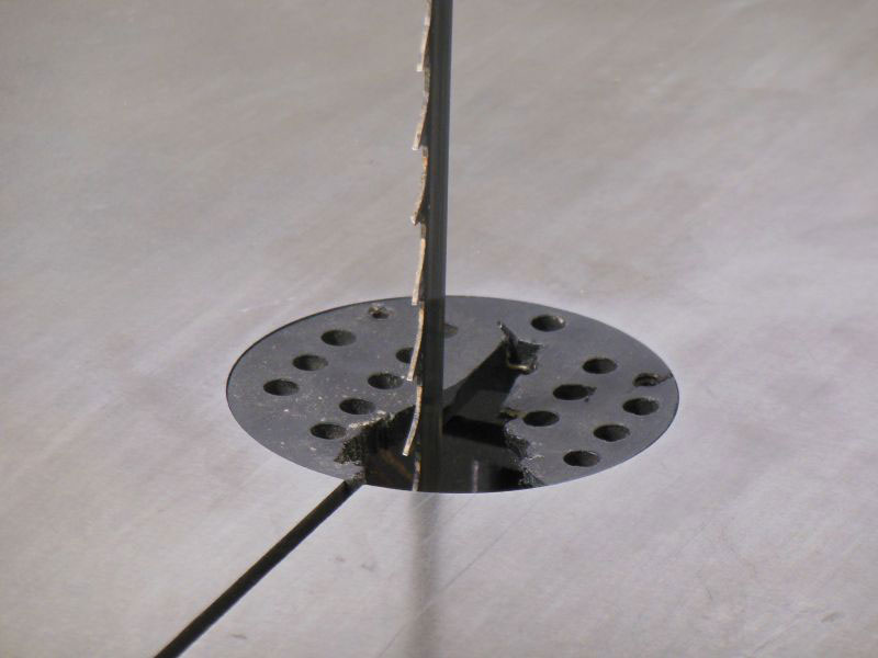 Use whatever tool is handy to nip off the splinter about an eighth of an inch above the surface of the insert (Figure #49). Do this to both holes.