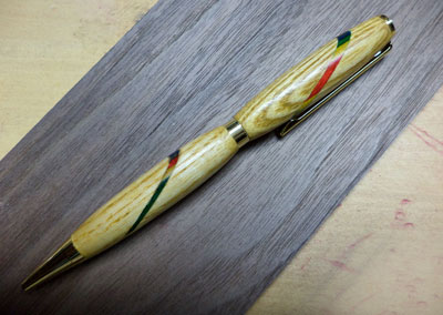 Holly inlay with the surface of the blank using a Paring Chisel. The pen was turned using a 7mm