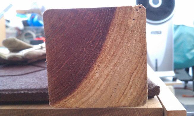the project is complete to the point I can do for a month or so, since the only 4x4 redwood sticks I could find were green. I have to let it sit for a month or two before I put a finish on it. (By the way, my workbench was green redwood too. I never had any problem with it warping - at least not yet. It is pretty stout though - which is not the case of these end grain slices.)