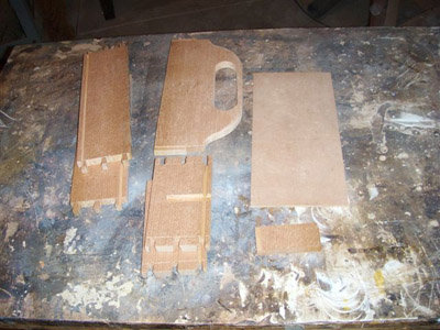 Mate the sides with the appropriate end and mark the sockets using the pins as a pattern. Then extend the lines down to the thickness mark on both sides. I cut all the socket pieces separately in case there is any variation in the pin spacing. Place both sides face to face with the bottoms together and clamp in a vise. Clamp the soft wood scraps on and hog out the pin spaces. Remove the clamps and clean up the openings as before. Mate the pieces again and try the fit. If the pins are too tight either widen the spacing or narrow the pins until the joints slide together.
