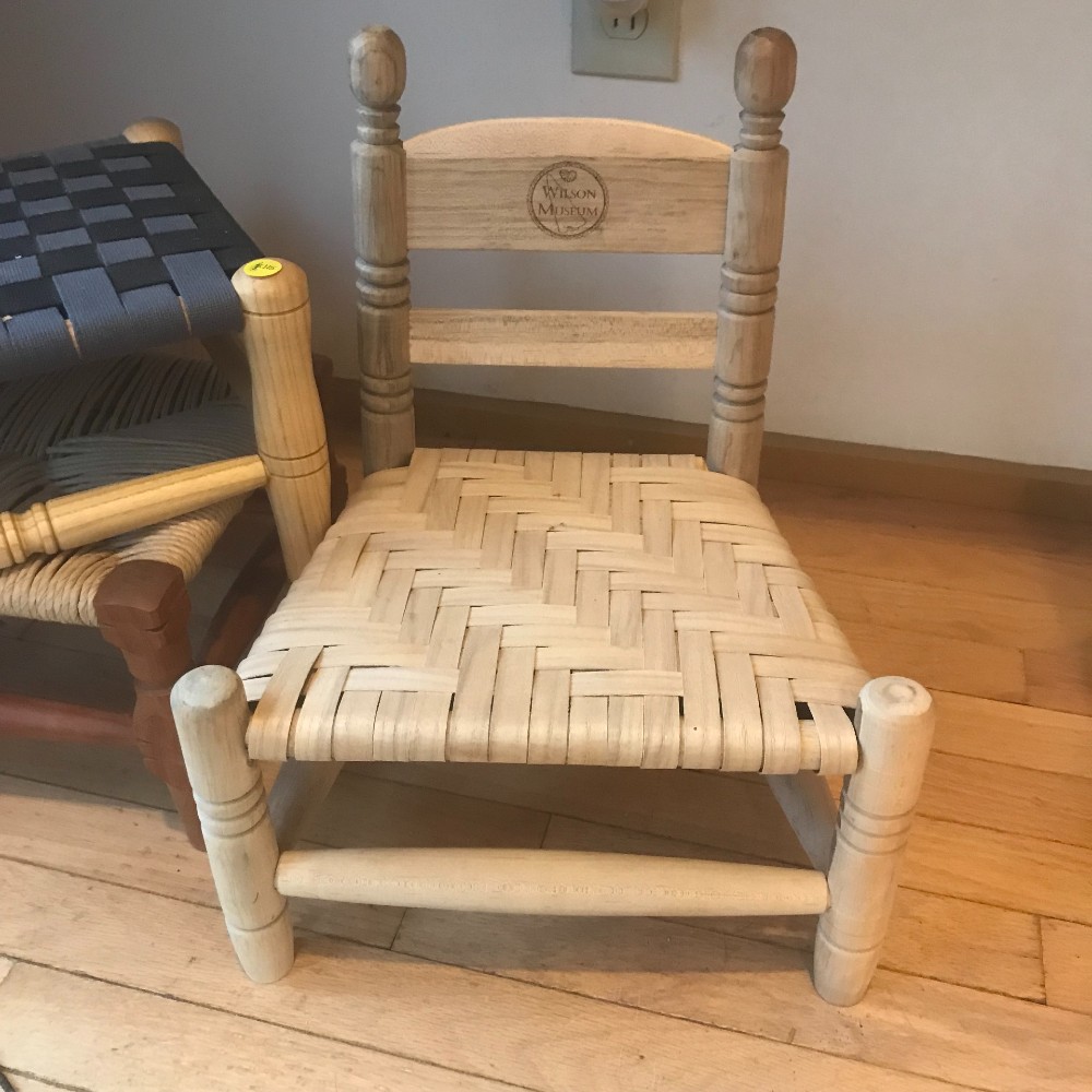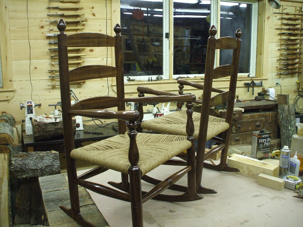 With luck, I will be able to pass on to him some stories of how I rescued the maple blanks in his small chair from the firewood pile, the rush-reeds from the streambed (later dried and then woven), and "walked through snow-drifts" to my shop to turn and assemble his special chair. The pink piano? Well, someone actually purchased that for him. No one remembers who did that.