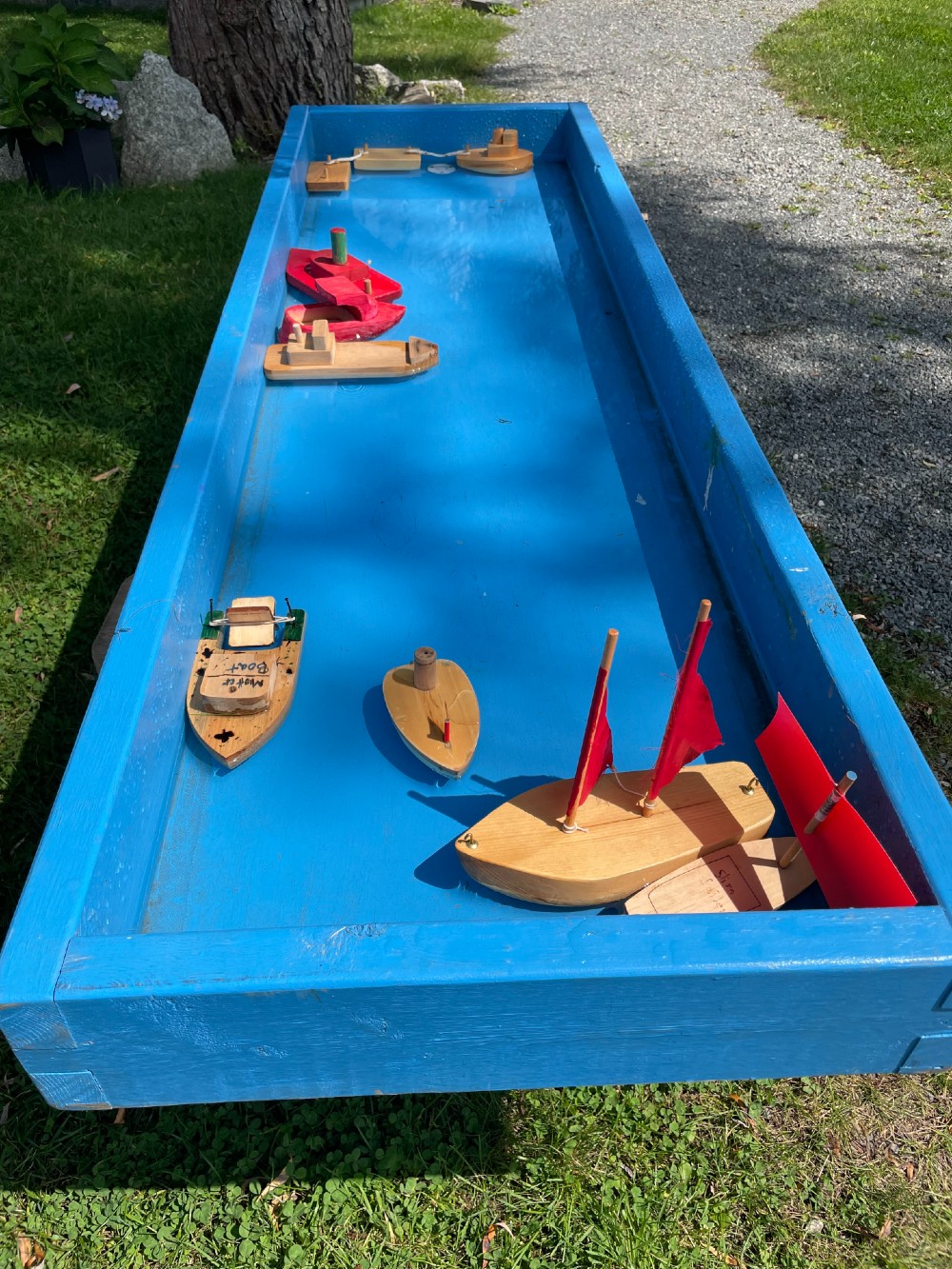 Other toys of our own younger years are great too – paddle boats, sailboats, tugboats, locomotives, cars and trucks, dolls, tricky-brain-busting puzzles, and books.