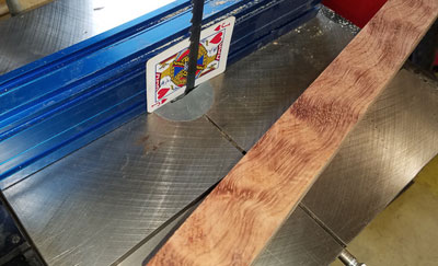 spacers to set the blade distance from the fence. I always keep a set of playing cards in the shop for setting