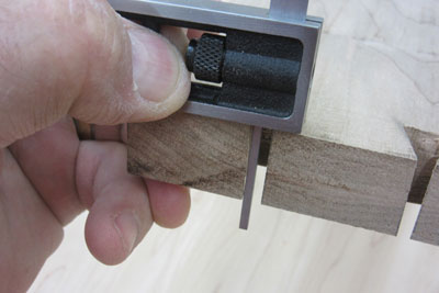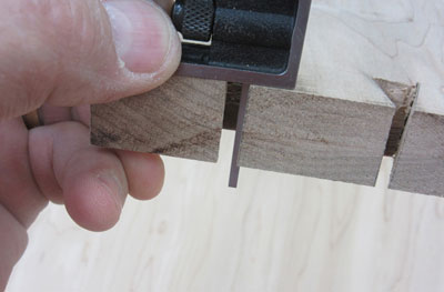 Now, to test the opposite end of the dovetail joint requires switching to the narrow blade. Since