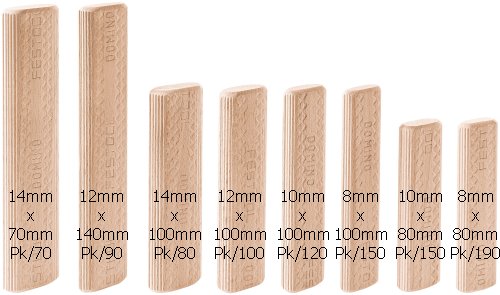 Pre-cut Beech tenons for use with the Festool Domino XL DF 700 Joiner. Available in 8mm, 10mm, 12mm and 14mm thicknesses. Each thickness comes in two lengths.