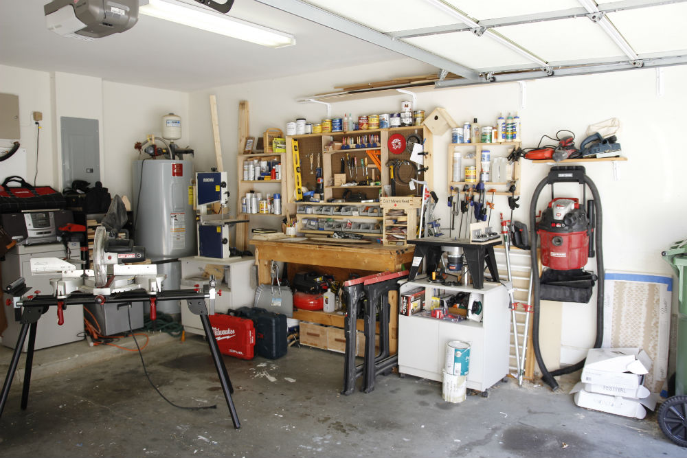 My shop is in our two-car garage, which at one point we could fit two cars and now on a good day we can fit