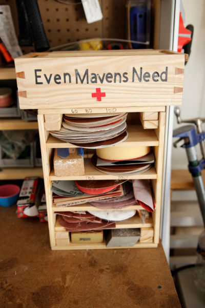 at Highland Woodworking. I added a few interlocking slots and keep it stocked with band aids for minor