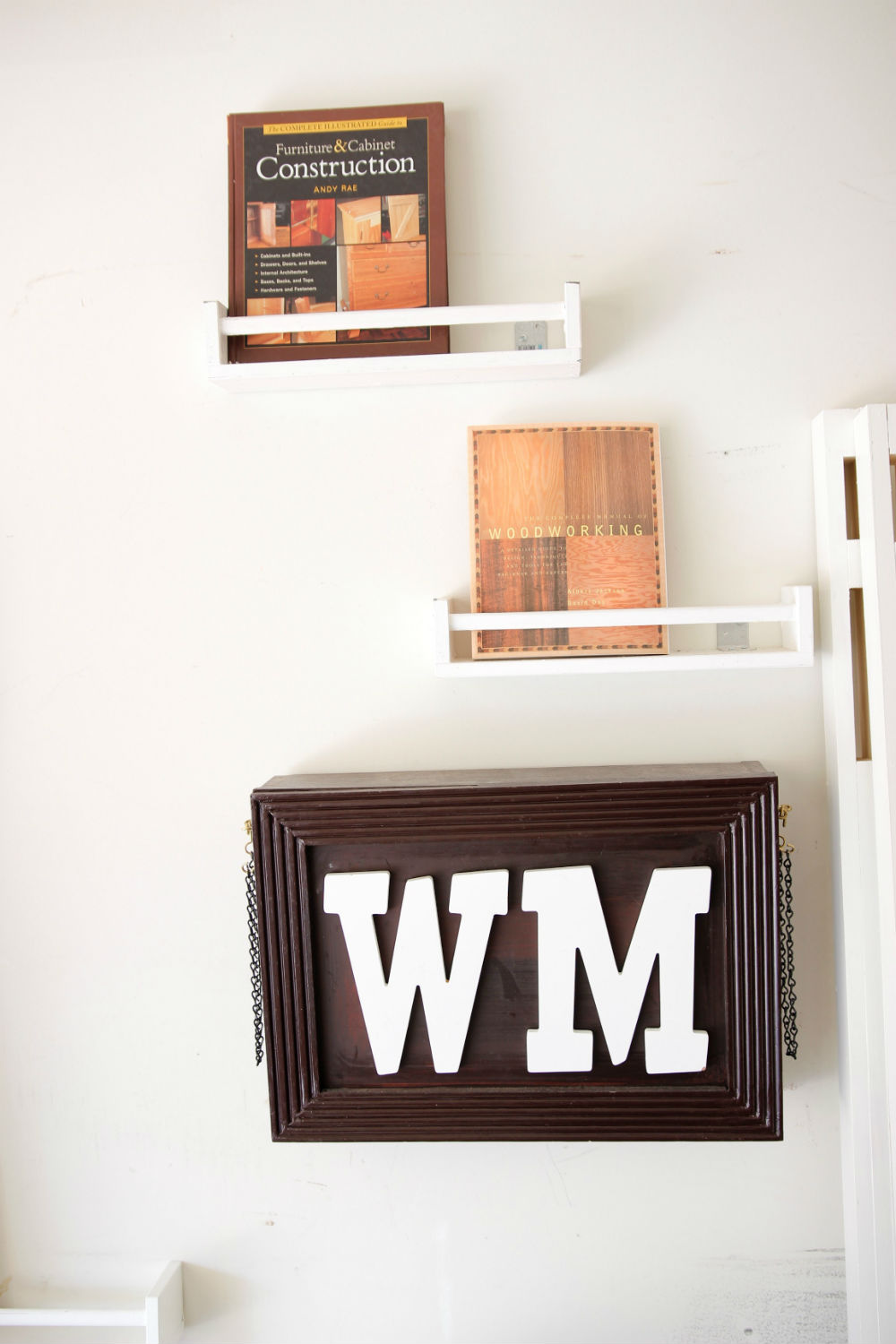 a place to work on my woodworking plans. I also keep some of my books here to refer back to while I'm working.