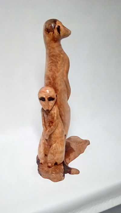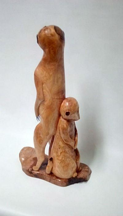 Meercats carved in a Cypress knee: