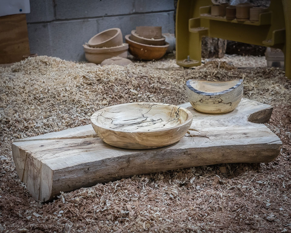 I did manage to turn two bowls, one with a natural edge and one from the crotch.