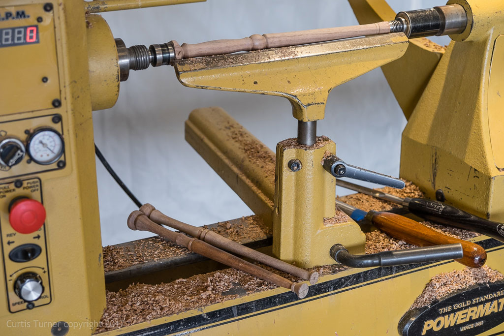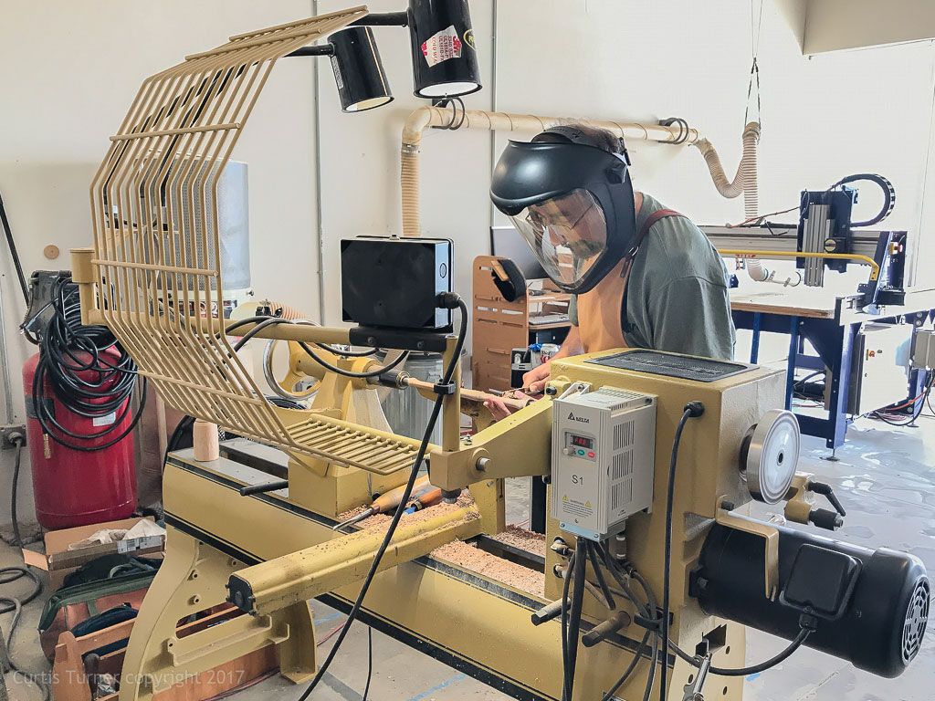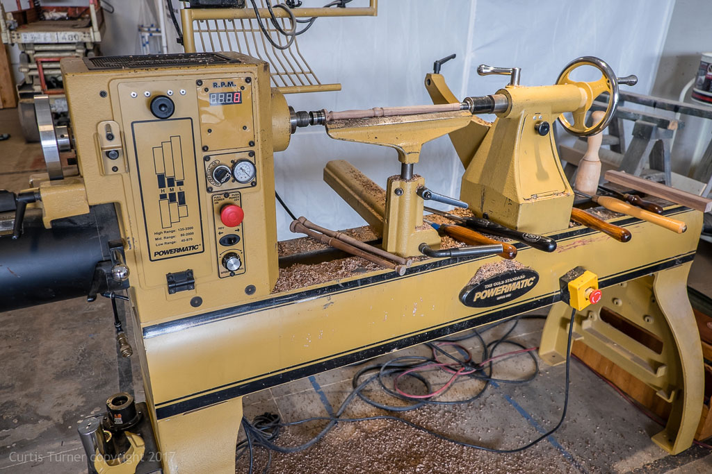 Their facility is tricked out with some great tools, which include a Powermatic 4224 wood lathe, metal lathes, milling
