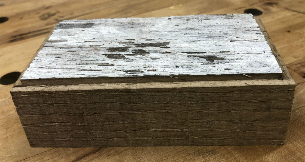 What remained was the lid. I chose a board with some white paint remaining to give the box a bit of
