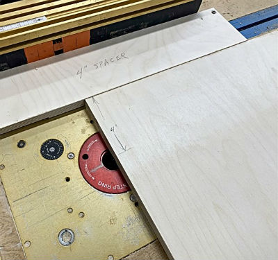 then made a 4" spacer. With the spacer in place I could rout the 4" grooves and then I could