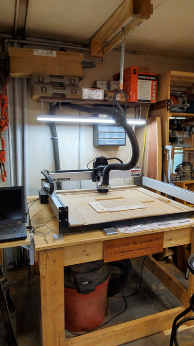 The Shapeoko XXL is a new addition to the shop. I'm starting to get the hang of using it, and am quite happy with its performance, though it's a lot of space to dedicate in such a small shop.