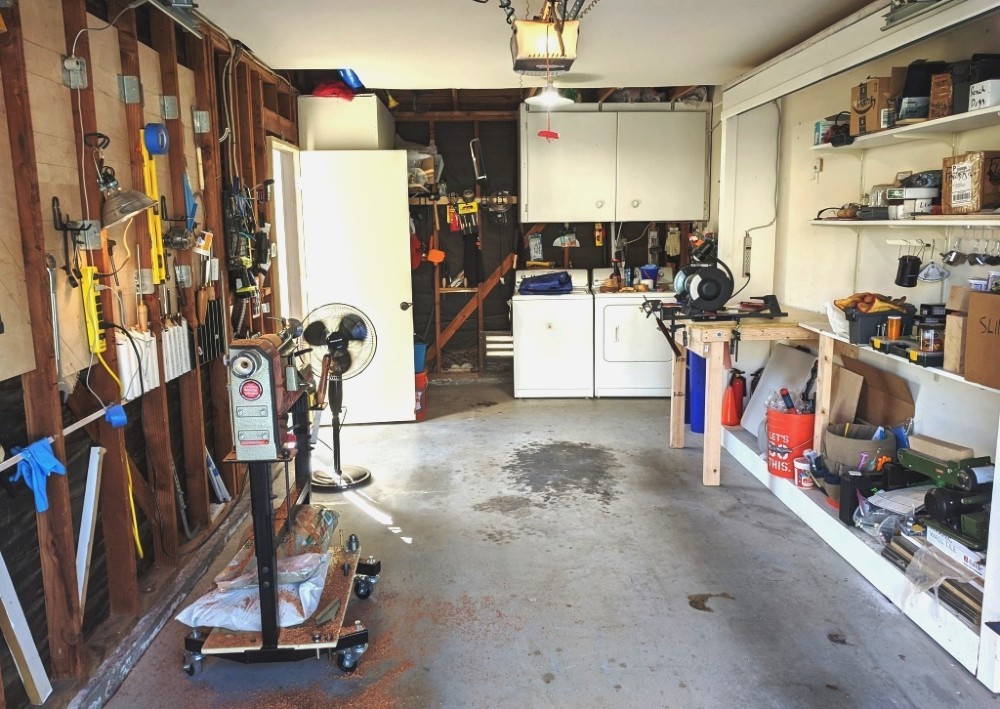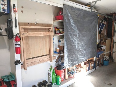 Figure 5 - Supply Side of converted garage-shop has Fold-Down Work Table with slide over