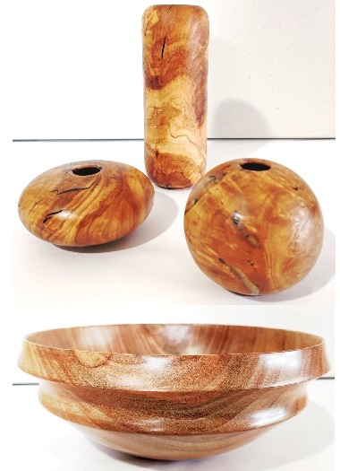 Figure 8 - Local California olive wood turned hollow forms and avocado turned bowl.