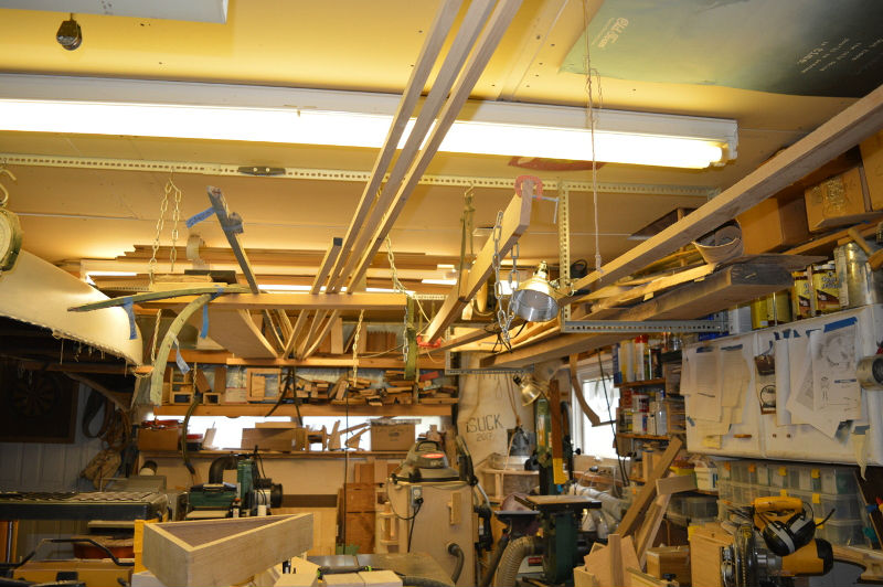 I try to use every cubic foot of space in my shop. Fortunately, I'm not very tall so I can suspend lots of stuff from the ceiling like lumber, jigs, and canoe parts.