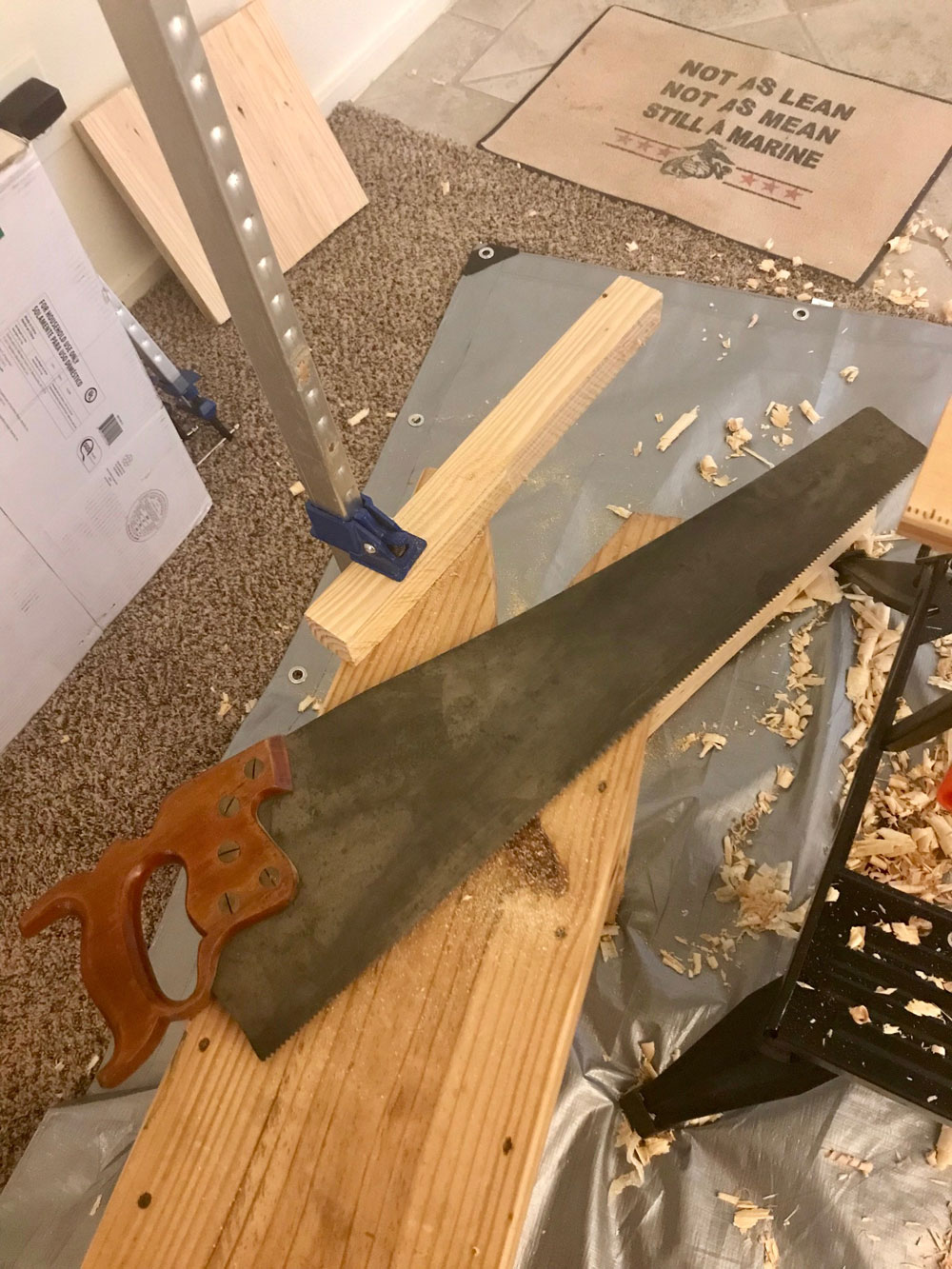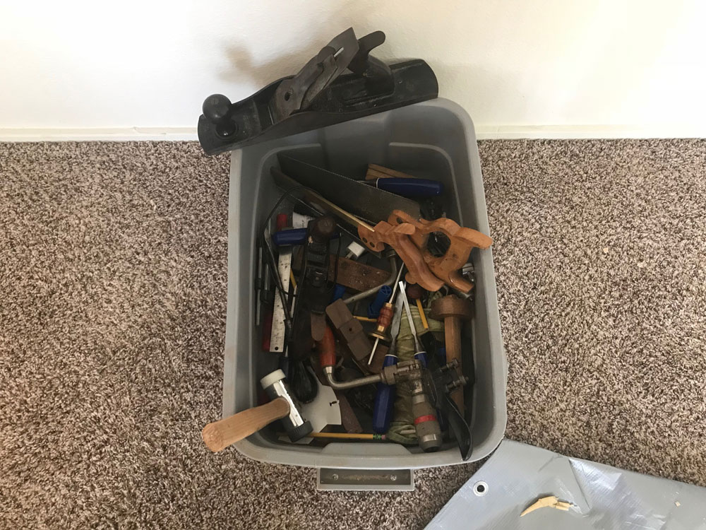 While I'm not opposed to putting my toys away, I'm not accustomed to hiding them. In my home shop, tool storage is a combination of "on the wall" and "on the bench". Seems pretty cut and dried, but when planning this tiny shop, I missed several things that aren't quite on the bench and aren't quite off it. My sharpening paraphernalia lives on a shelf under the bench, shooting board and bench hooks lean against the "working end" and clamps….. clamps live wherever they want. This doesn't work in a one-bedroom apartment, especially if you run the chance of a surprise barracks inspection by sergeant Major Wife. It's not a matter of, "a place for everything and everything in its place" rather, it's a matter of no place for anything and everything in a box. What you're reading is the petulant rants of a man accustomed to his workshop. I tell myself to take a breath, build a tool chest, and learn to work from it. Craftsmen have done it for centuries. But right now, I just ain't likin' it.